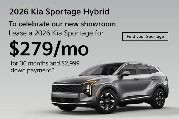New 2026 Kia Sportage Hybrid S $279 per month plus tax on a 36-month lease, $2,999 toral due at signing. Amount due at signing includes $2,999 down payment as cash or trade-in equity due from customer, plus government fees and taxes. Includes a $0 security deposit, $799 of additional dealer fees. On approved credit, not all customers will qualify. Kia Finance, 10,000 miles per year, $0,20 per excess mile, MSRP: $35,315, Vehicle(s) eligible; KNDPUDDGXT7307818. Expires on 3/31/2026, Available at Flow Kia of Charlottesville.