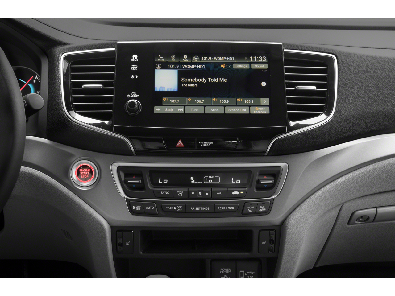 - Radio: AM/FM Audio System -inc: 215-watts, 7 speakers including subwoofer, Bluetooth® HandsFreeLink, Bluetooth® streaming audio, MP3/auxiliary input jack, Radio Data System (RDS), Speed-Sensitive Volume Compensation (SVC), USB smartphone/USB audio interface w/2.5-amp port in front console, USB charging port w/2.5-amp port in center console and 2nd-row (2 ports), 8" display audio w/high-resolution electrostatic touch-screen and customizable feature settings, HondaLink, CabinControl remote compatibility, Apple CarPlay integration, Android Auto integration, SMS text message function, SiriusXM radio and HD Radio