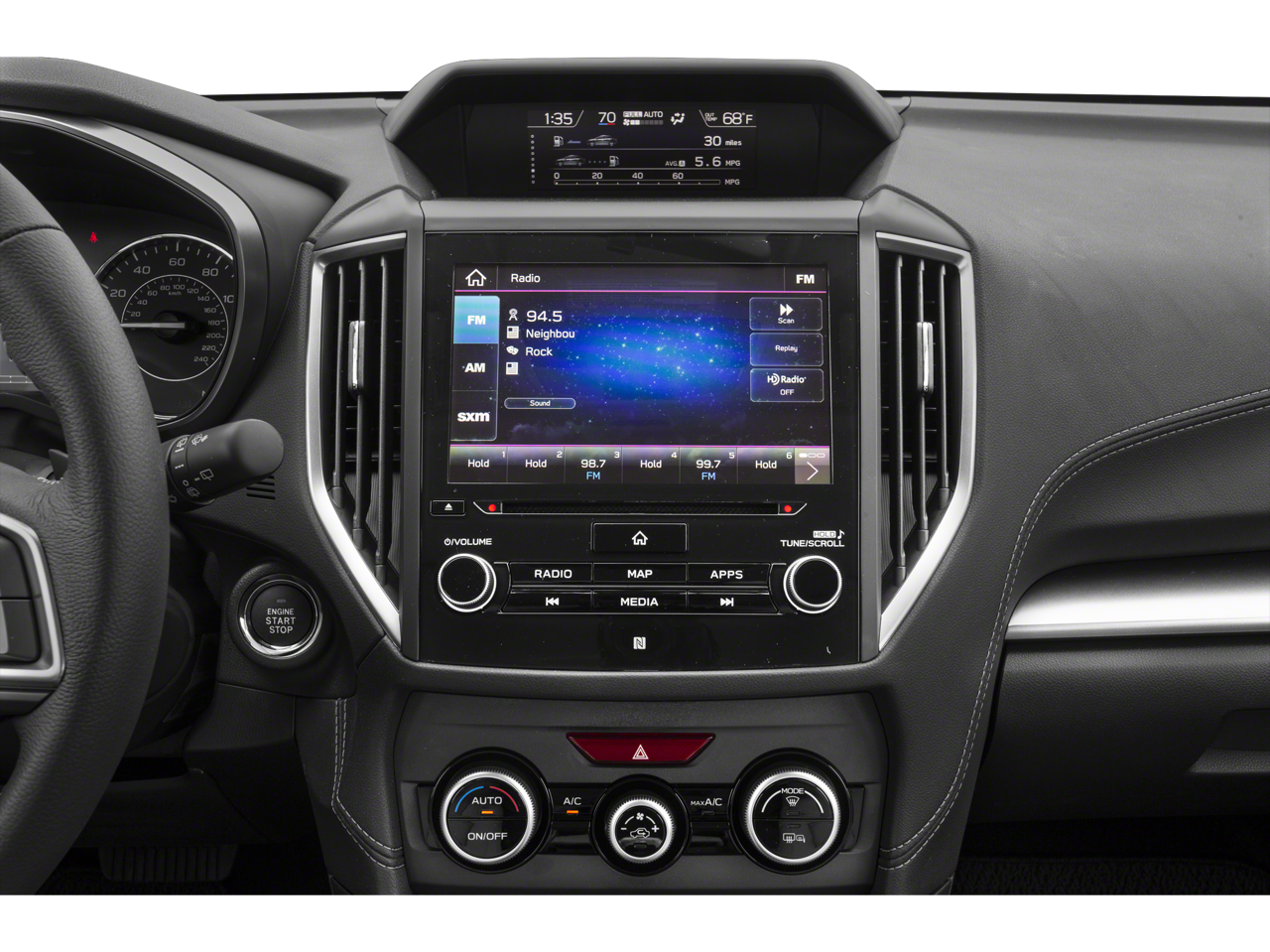 - Radio: Subaru STARLINK 8.0" Multimedia Plus System -inc: AM/FM stereo, HD radio, single disc CD player, MP3/WMA/CRR/RW file capability, multi touch gesture high resolution 8.0 LCD display screen, voice activated controls, Bluetooth® audio streaming connectivity, Bluetooth® hands-free phone connectivity, Bluettoth hands-free sms text messaging connectivity (applicable w/compatible cell phone), Near Field Communication (NFC), iPod control capability, rear-vision camera display, SiriusXM All Access radio (subscription required), SiriusXM Travel Link (subscription required), smartphone integration, AHA, Android Auto, CarPlay, Pandora, 6 speakers, 3.5mm auxiliary input jack, dual USB ports, roof mounted antenna and audio/satellite connected services