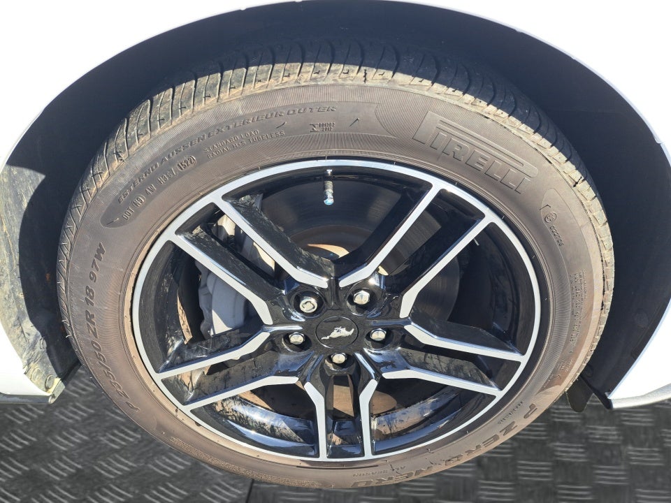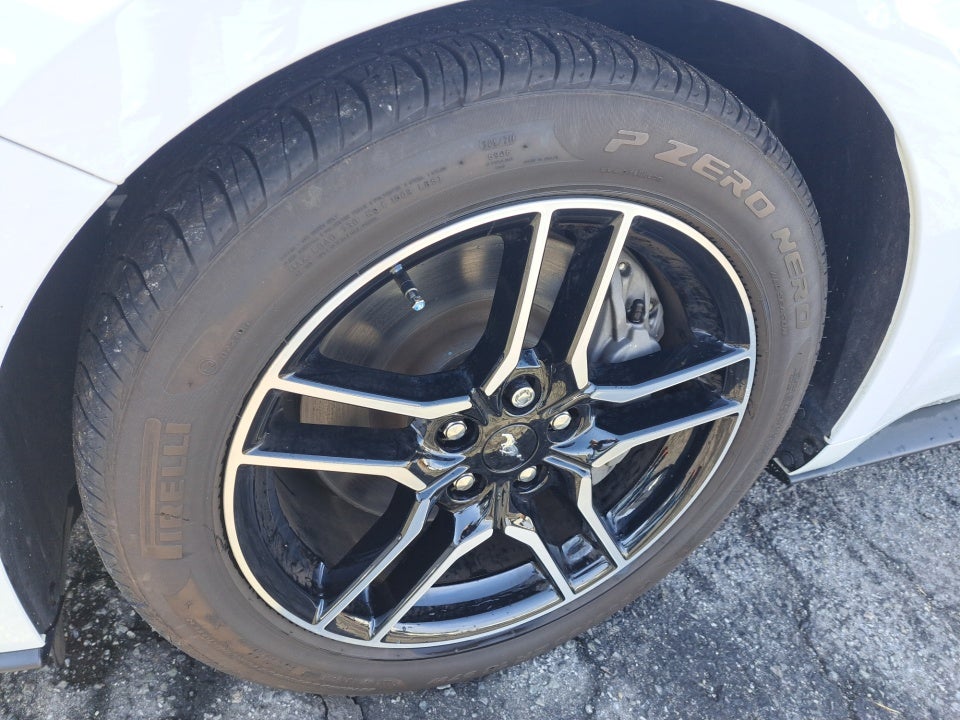 Complementing the Mustang's impressive performance is its sleek and athletic exterior. The striking white paint and bold design elements including the integrated turn signals and spoiler create a commanding presence on the road. The 18-inch machined-face aluminum wheels further accentuate the Mustang's sporty and sophisticated aesthetic.