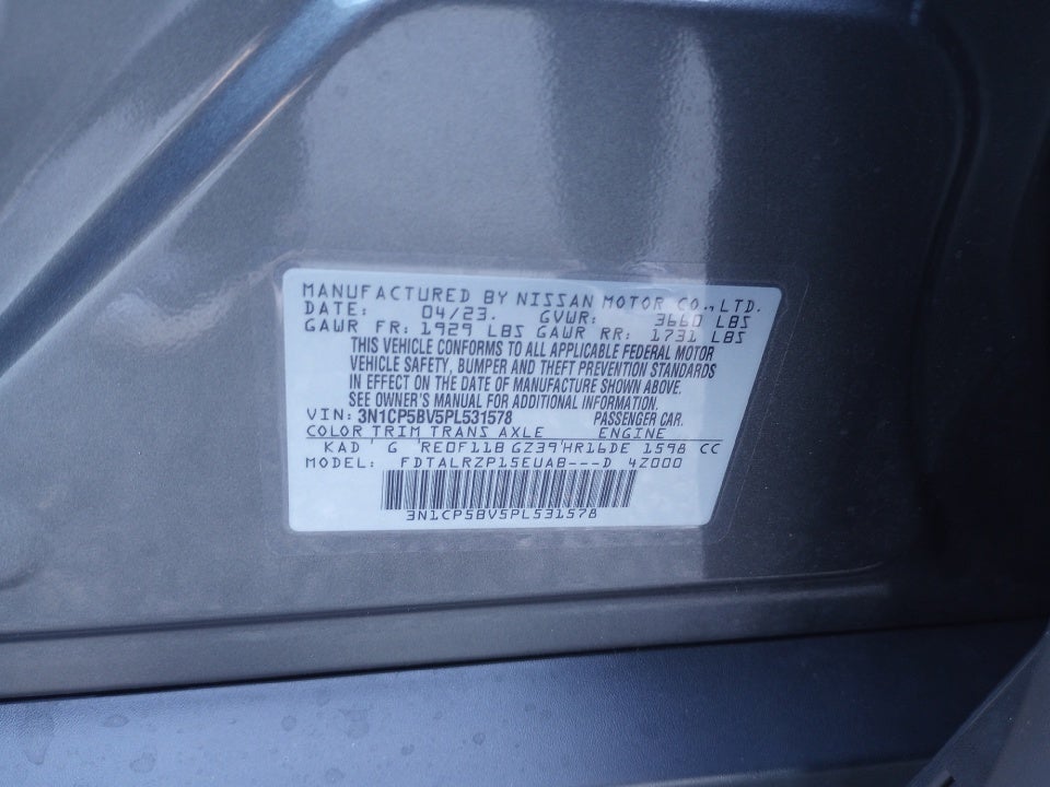 2023 Nissan Kicks S Gun Metallic S FWD 1.6L 4-Cylinder DOHC 16V