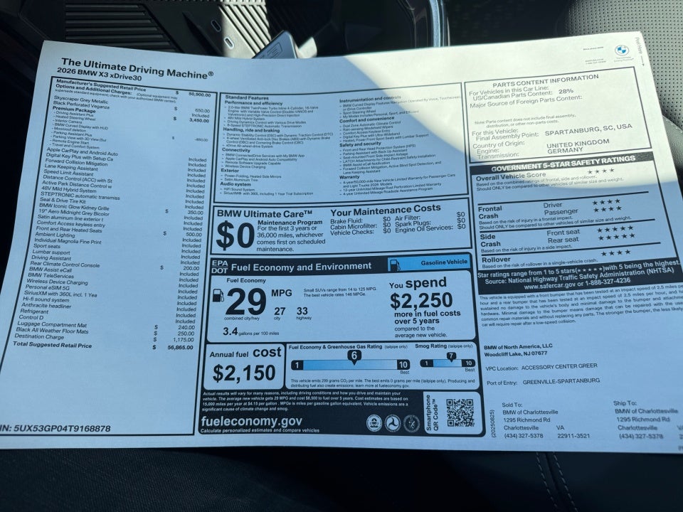 BMW of Charlottesville is excited to offer this superb 2026 BMW X3 Skyscraper Gray Metallic 30 xDrive.